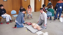 2日目の午前中には、心肺蘇生法(人工呼吸と胸骨圧迫)とAED使用方法の講習会が行われました。